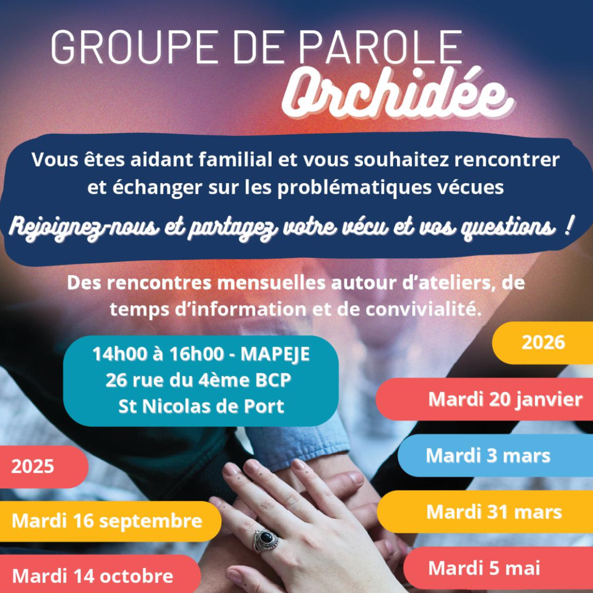 Le CCAS, vous propose, en partenariat avec le service Autonomie du Département, des ateliers groupe de parole Orchidée en direction des aidants familiaux, c’est-à-dire à toute personne confrontée à la dépendance d’un proche âgé et qui lui vient en aide régulièrement.