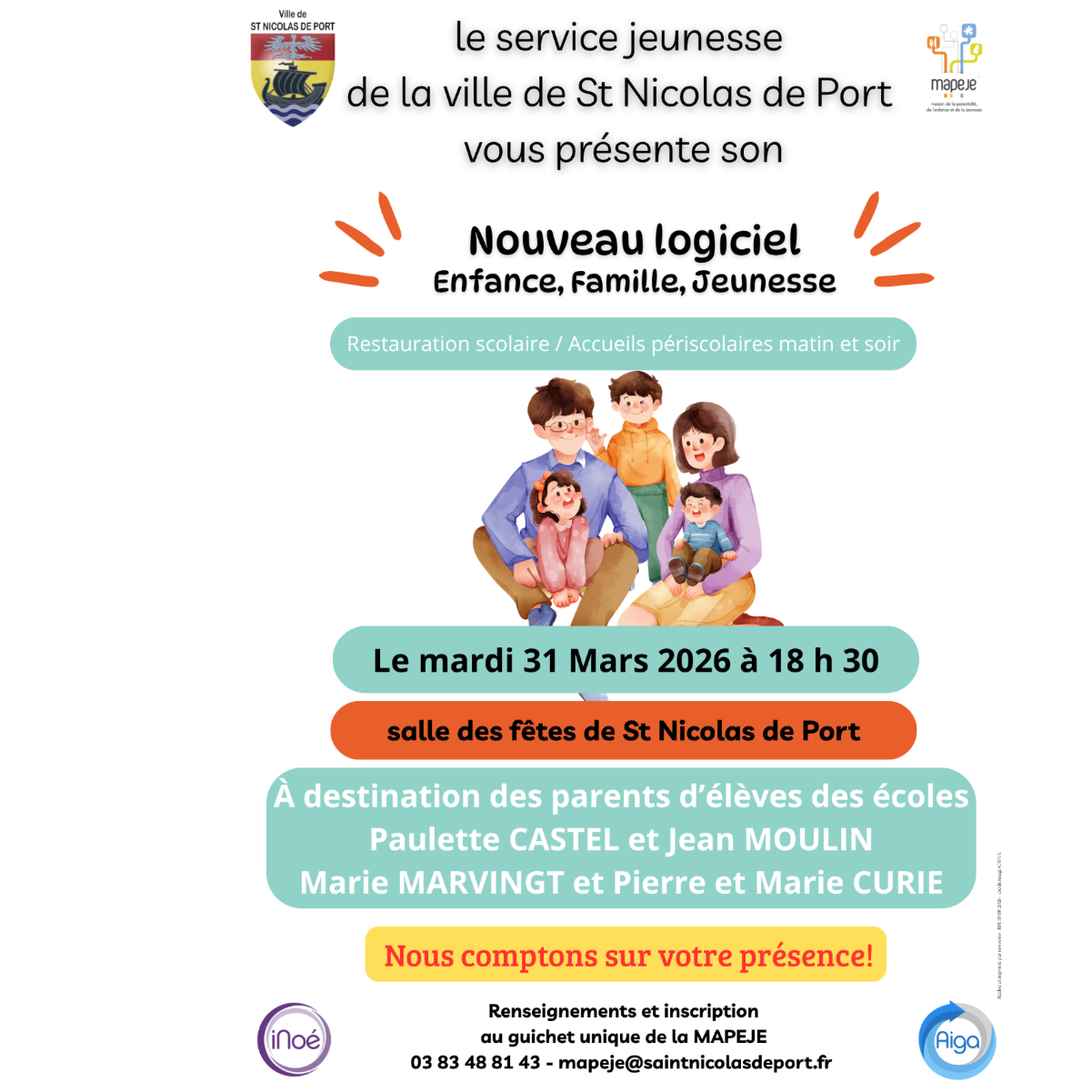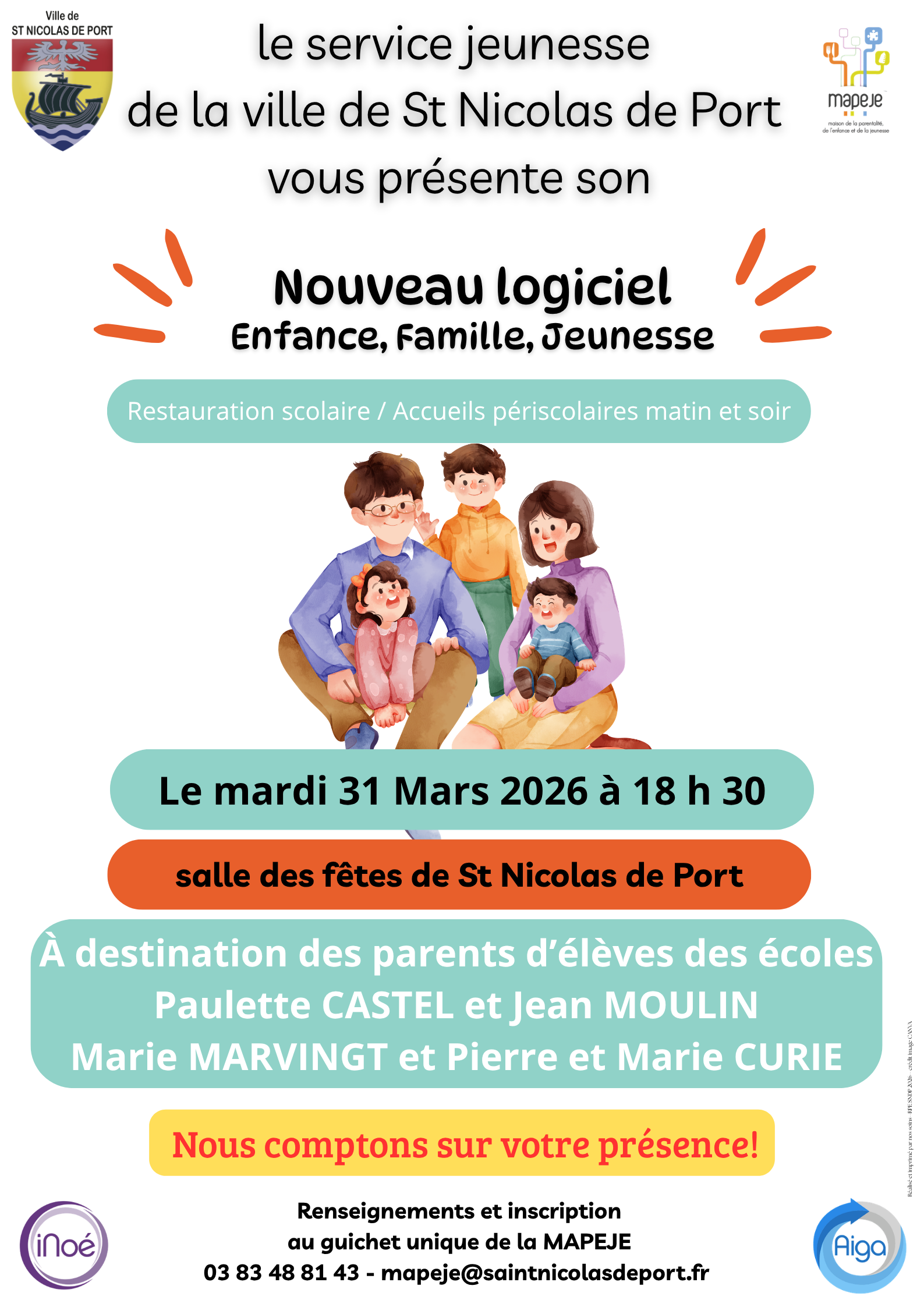 Les parents des enfants inscrits dans l’une des 4 écoles de la ville de #saintnicolasdeport, sont invités à une présentation de ce nouveau logiciel et des démarches qui y sont associées (inscription, réservation, paiement).