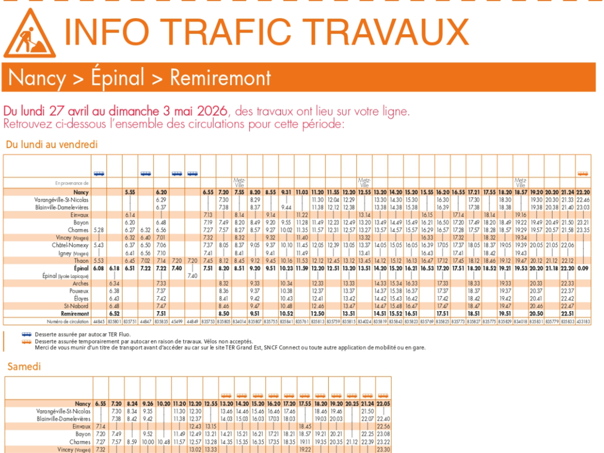 En raison de travaux à la gare de Nancy, les circulations sont modifiées sur les lignes L 12 et L 04.